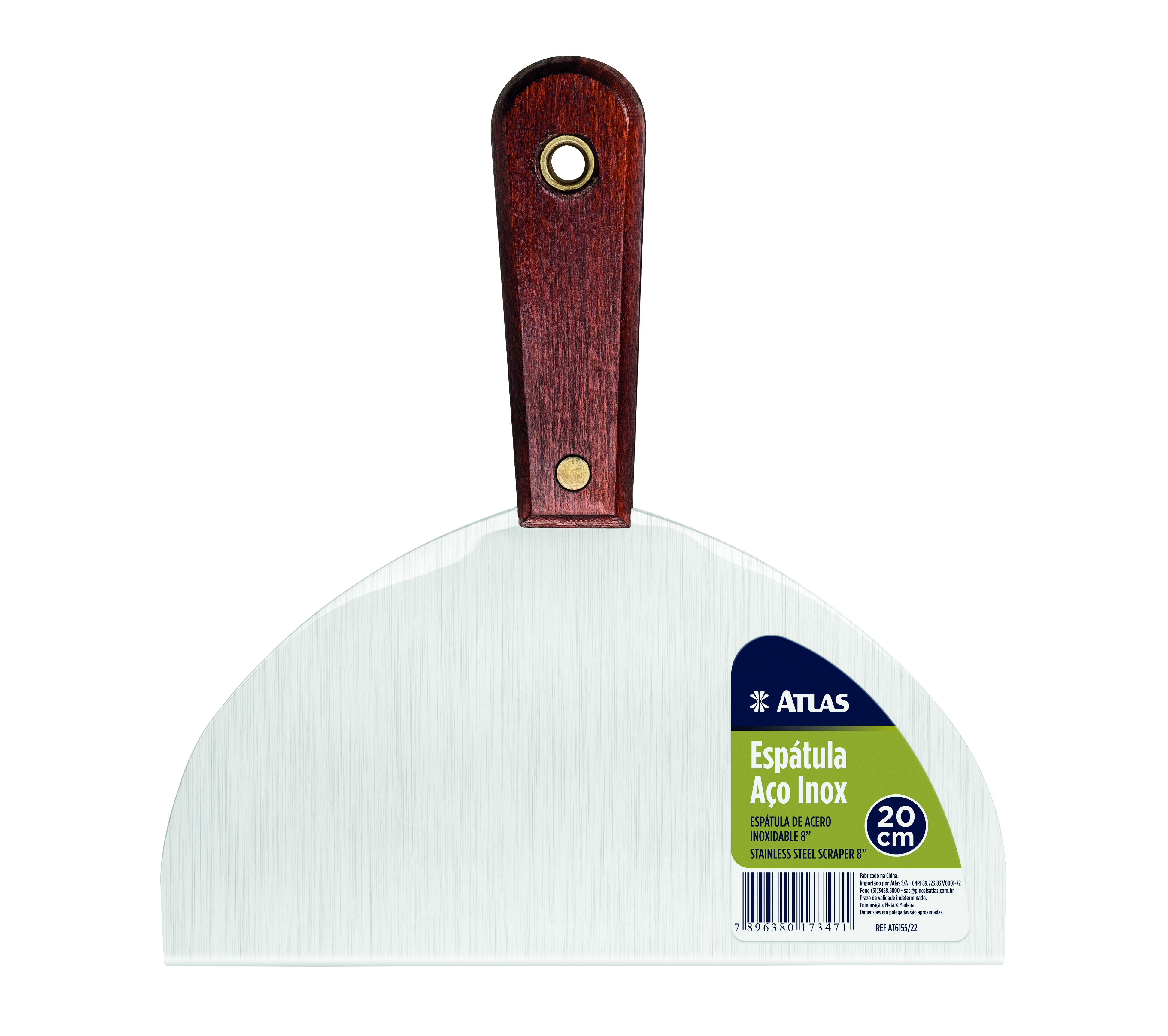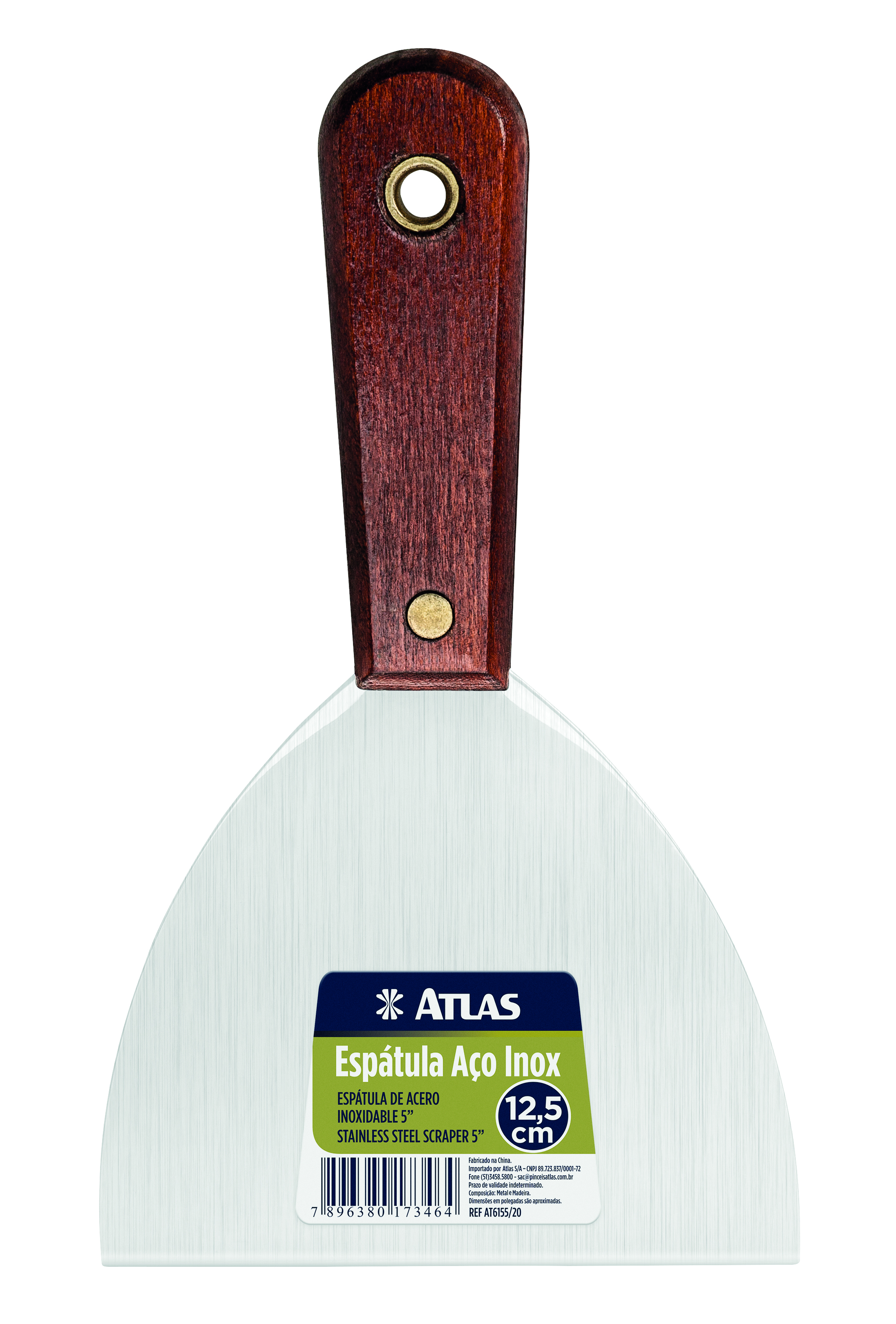 Espátula com lâmina de aço inox e cabo de madeira tratada. Resistente, proporciona um ótimo acabamento, precisão e conforto. Disponível de diversos tamanhos. Espátula ideal para raspagem e aplicação de gesso, massa corrida e massas de textura.