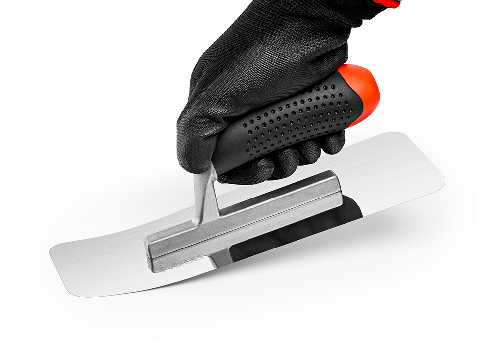 Desempenadeira desenvolvida para as fases iniciais da aplicação do efeito marmoratto, travertino e outros efeitos decorativos com massa. Não recomendamos o uso na fase de "compactação/laminação".