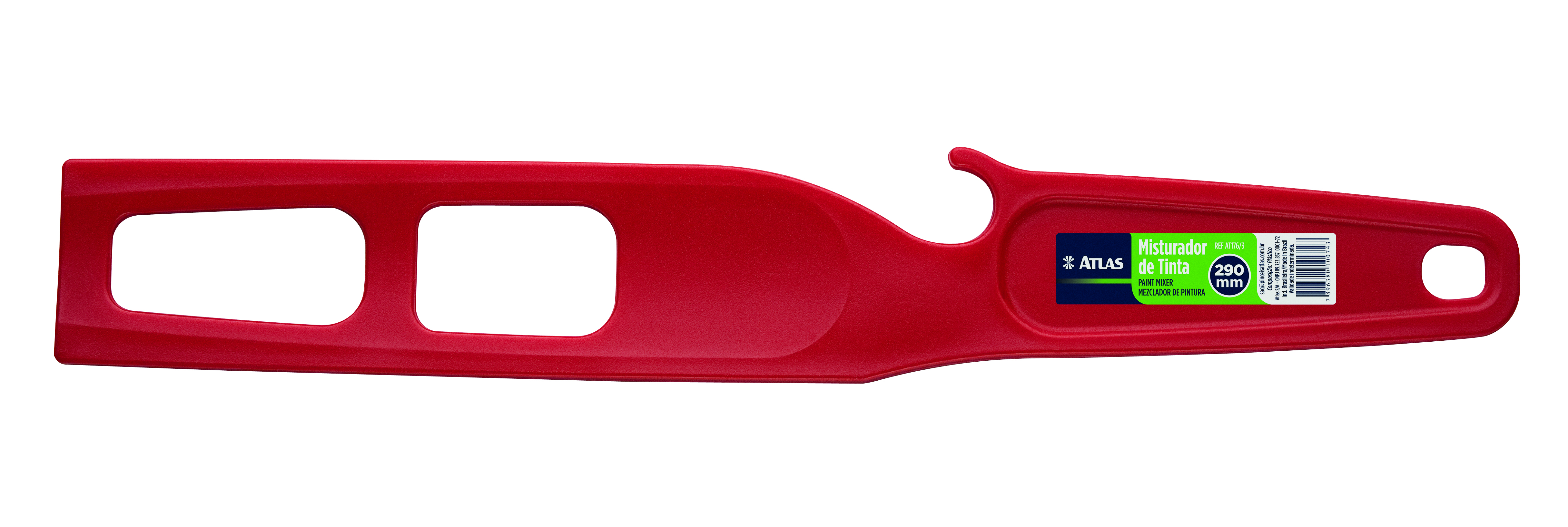 Misturador plástico de tinta manual, confeccionado em formato específico que beneficia a mistura dos mais variados tipos de tintas. Indicado para misturar tintas e vernizes em galões de 3,6 litros e lata de 900ml. Prático e eficiente em pinturas que necessitam de uma boa homogeneização.