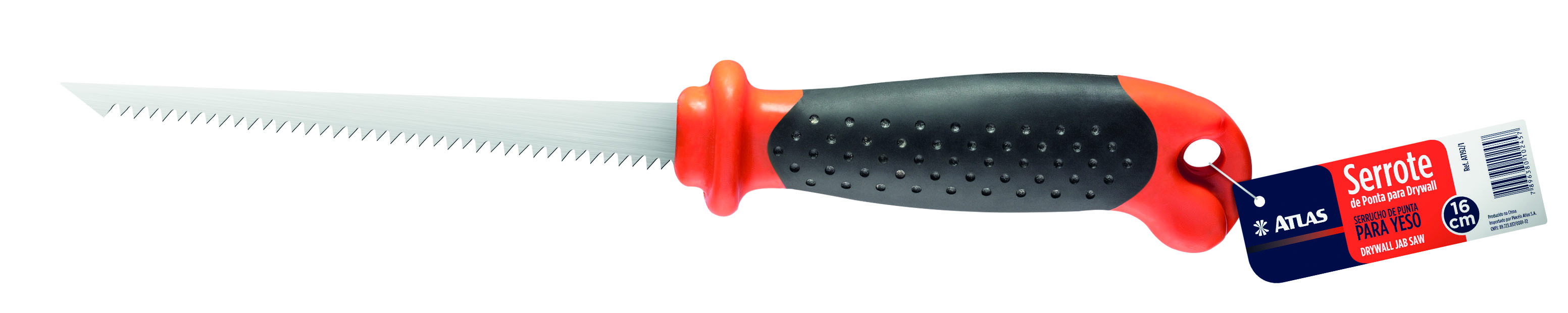 Serrote especial para cortes. Lâmina de aço temperado com 16cm rígida para furação e dentes afiados para corte. Punho emborrachado. Ideal para cortes em chapas de gesso acartonado/drywall.