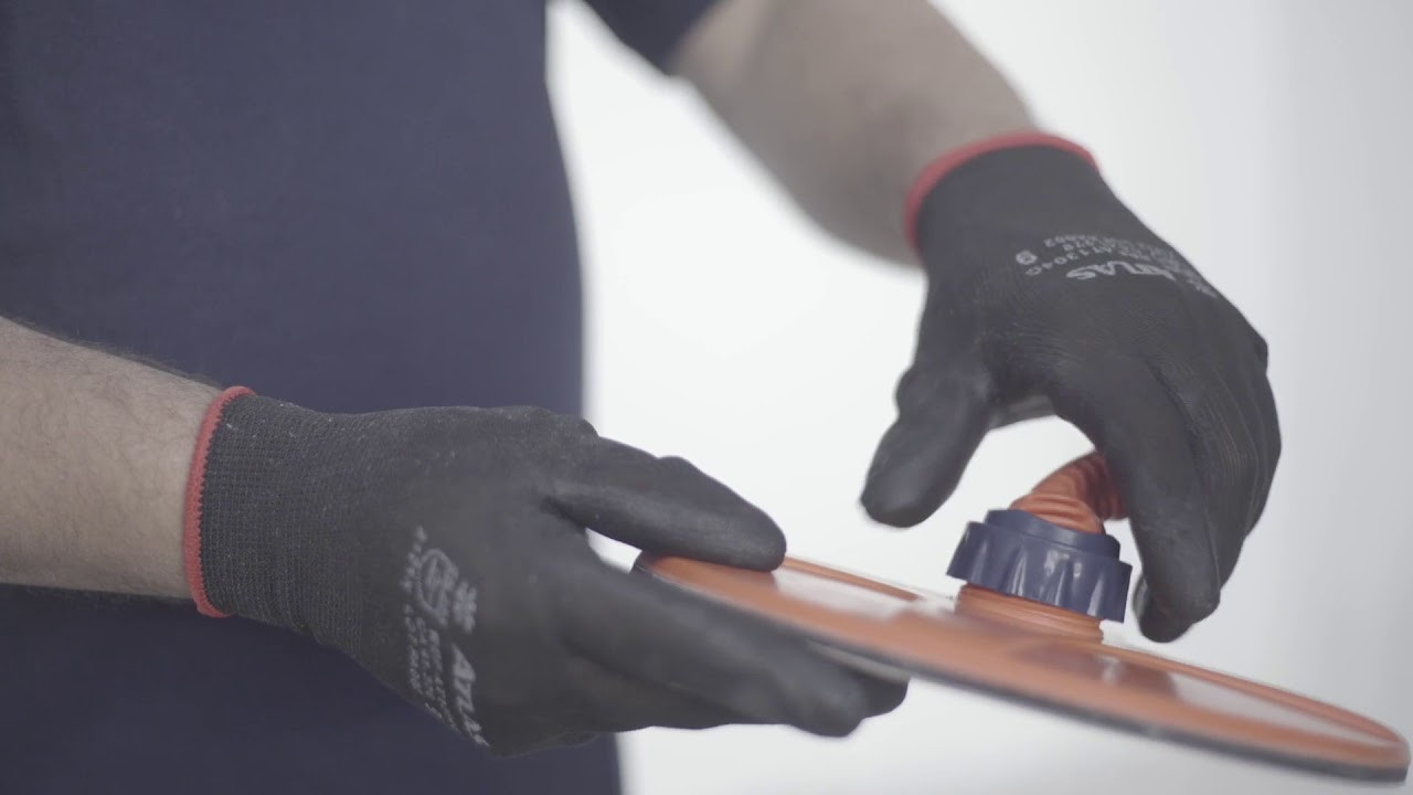 Desenvolvido em poliuretano, com sistema de fixação "Gancho-Argola" para discos de lixa de 225mm