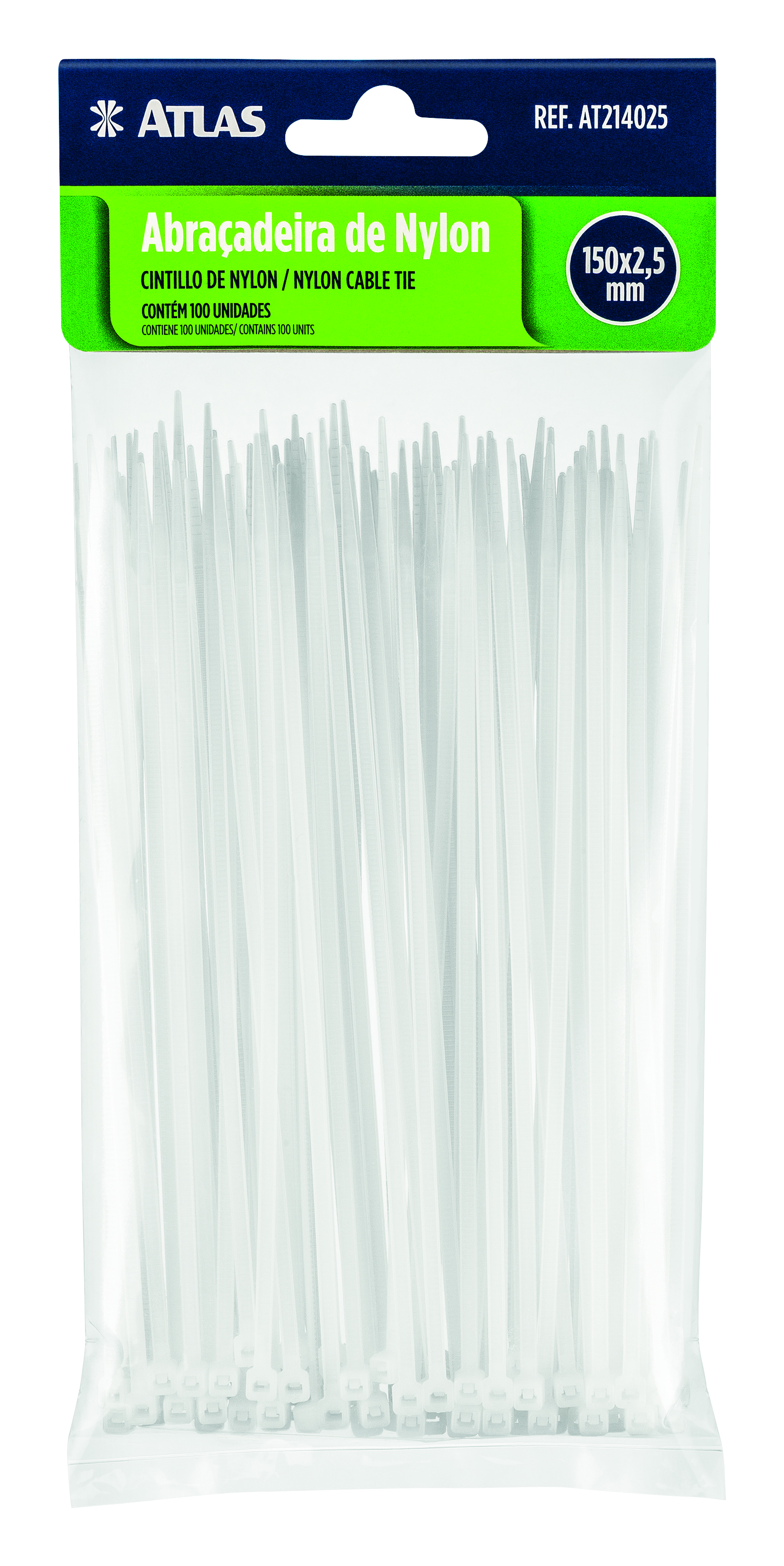 Abraçadeira feitas de nylon, com sistema de fácil aplicação que permite a amarração de vários tipos de produtos. Possui boa resistência à bases, óleos, gases, derivados de petróleo e solvente, não deformam e sua resistência térmica vai de -40 C a +85 C. As pretas são ideais para uso externo devido sua resistência e capacidade de absorção dos raios UV. Já as brancas são indicadas apenas para uso interno. Atenção: Não usar em superfícies onde haja contato com ácidos e compostos.