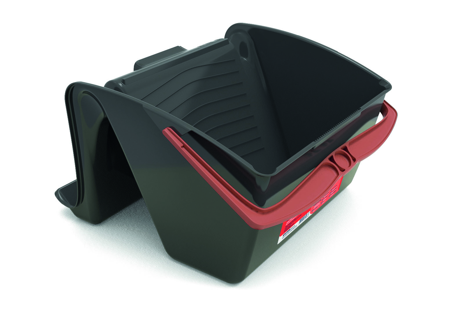 Caçamba para pintura com capacidade de 12L. Conta com características especiais, como medidor de volume de tinta, pente para redução do excesso de tinta do pincel, bico escorredor, rampa de rolagem, alça reforçada, descanso para o garfo, base para apoio do garfo, barreira de rolagem, apoio anti-tombamento e cantos arredondados que facilitam a limpeza. Caçamba para pintura com características especiais, desenvolvidas especialmente para tornar o trabalho do pintor muito mais eficiente.