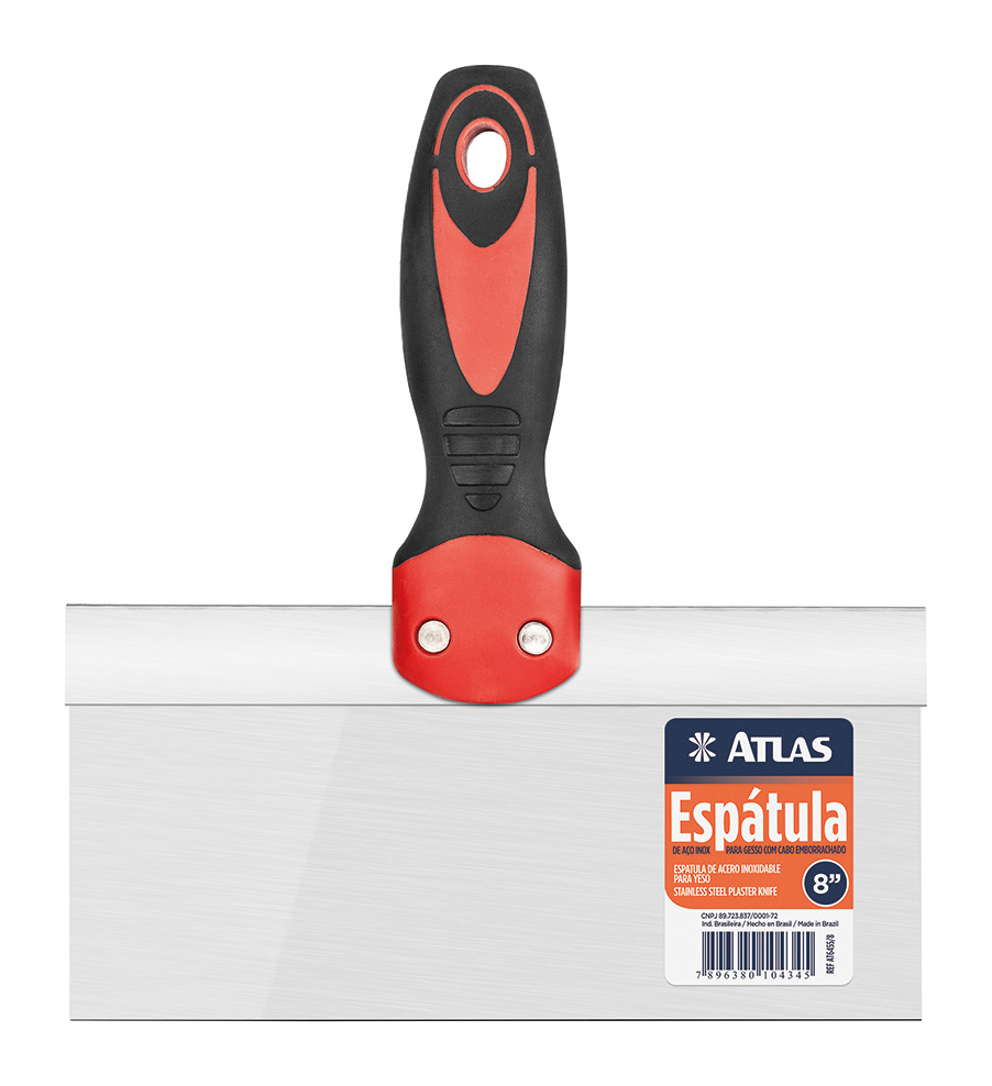 Espátula retangular inox para drywall de 8”, 10” e 12”. Lâmina em ângulo reto com grande flexibilidade. Ferramenta de alta qualidade, com cabo emborrachado para maior conforto, desempenho e controle. Ideal para aplicação de massa em paredes e juntas de drywall ou placa cimentícia.