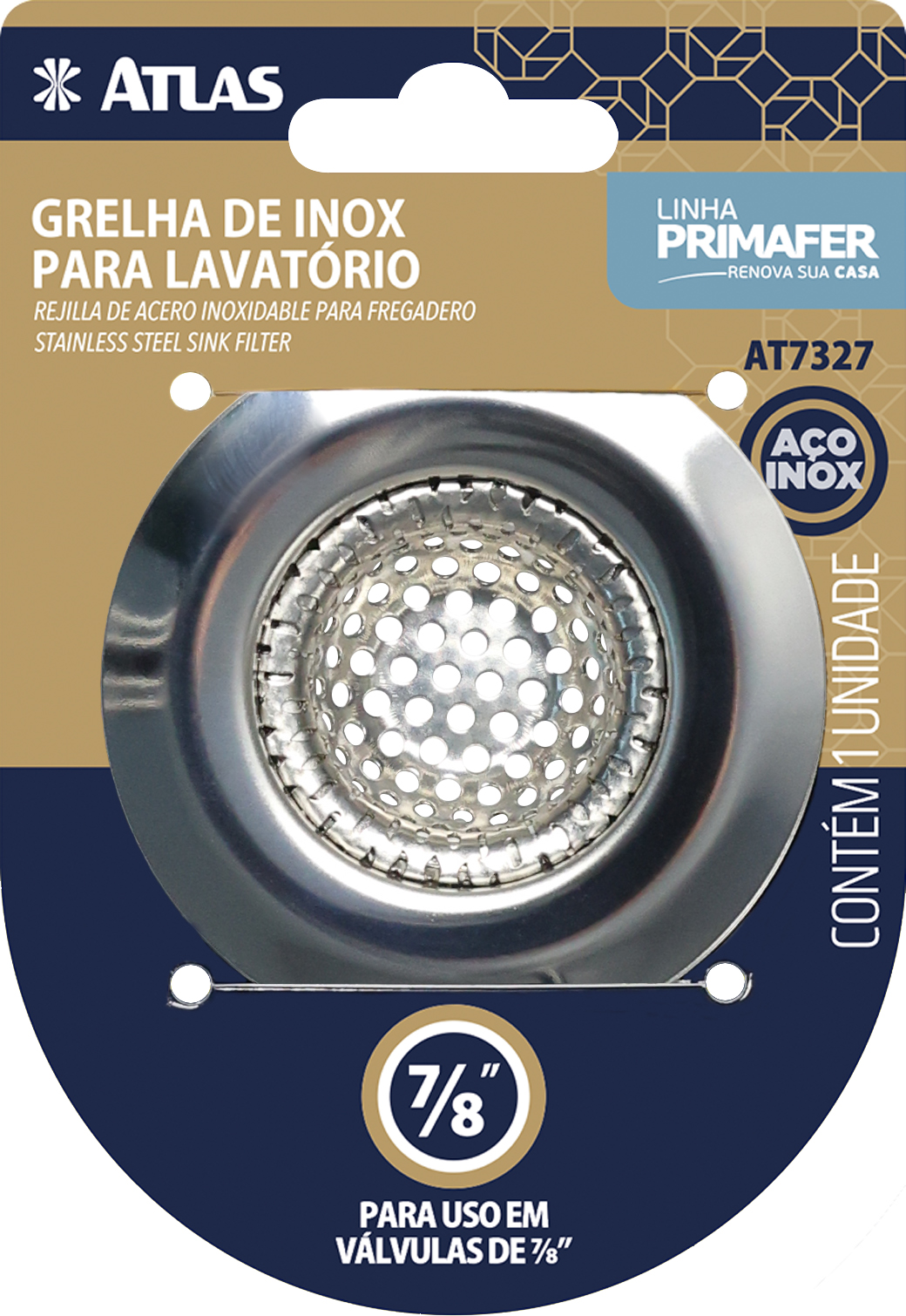 Grelha de aço inoxidável para lavatório, cobre toda a válvula de escoamento da água proporcionando maior segurança e estabilidade da fixação na pia. O produto é todo confeccionado em aço inox e não possui soldas.