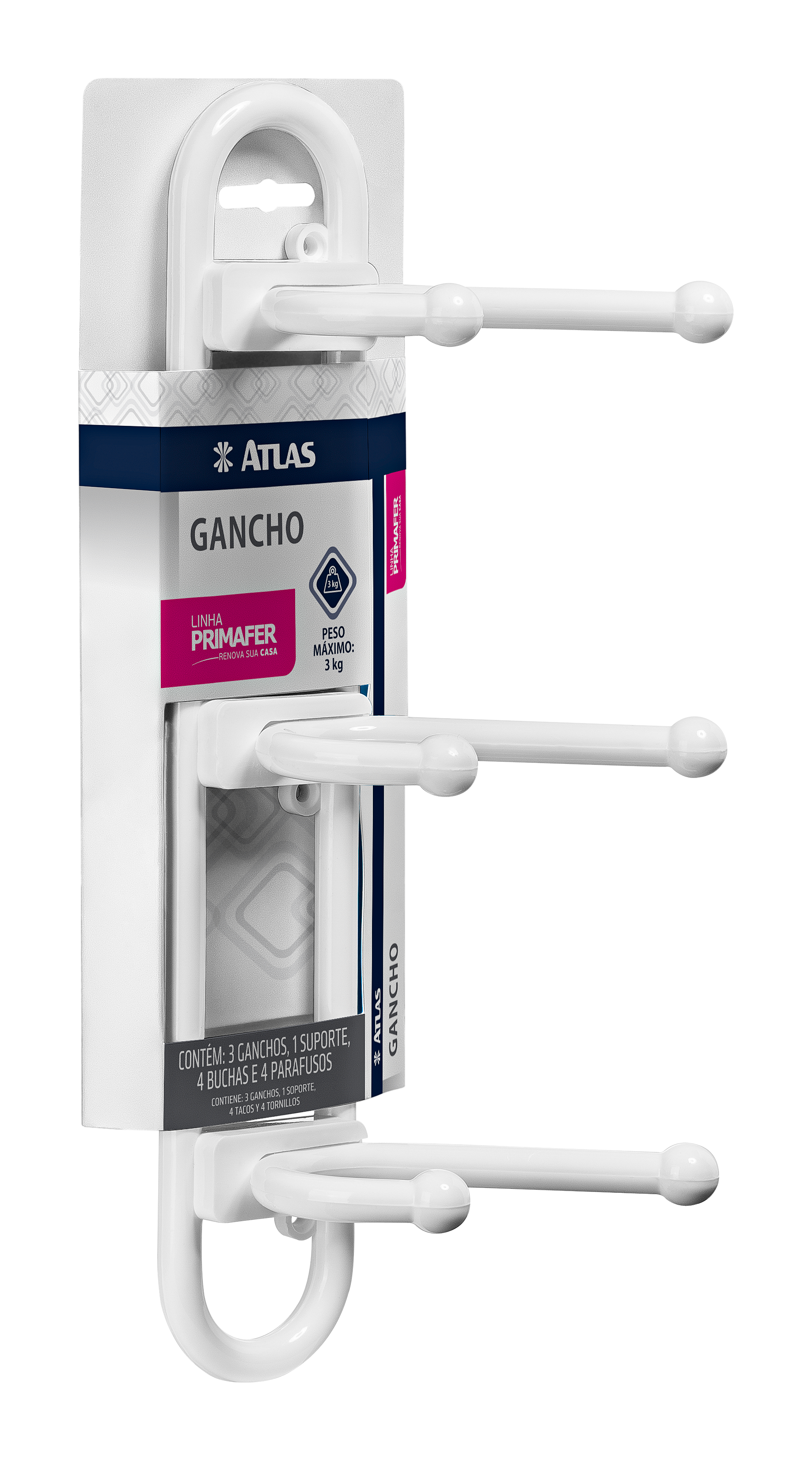 Gancho triplo de plástico. Acompanha parafusos para instalação. Versátil e resistente. Organiza e decora. Aplicável em qualquer ambiente. Organiza casacos, lenços, cachecóis, chapéus e decora o espaço. Indicado para suportar até 3kg.