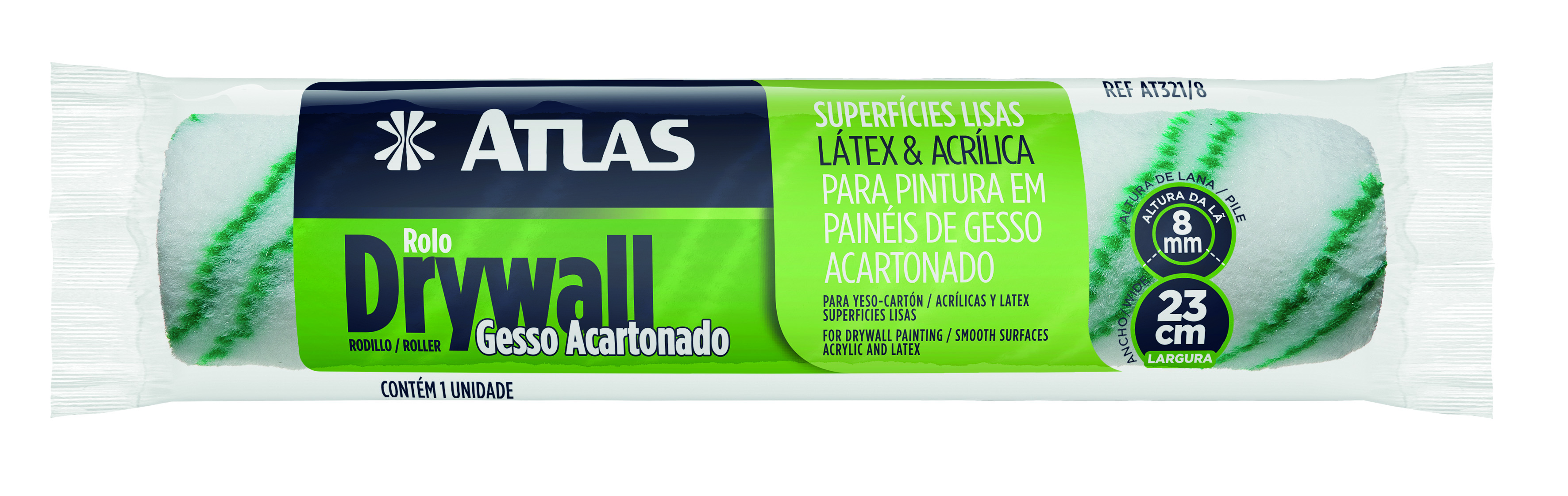 Rolo de 23cm de poliamida 66 trançada de 8mm de altura. Indicado para pintura em paredes lisas (drywall/gesso acartonado). Fino acabamento.