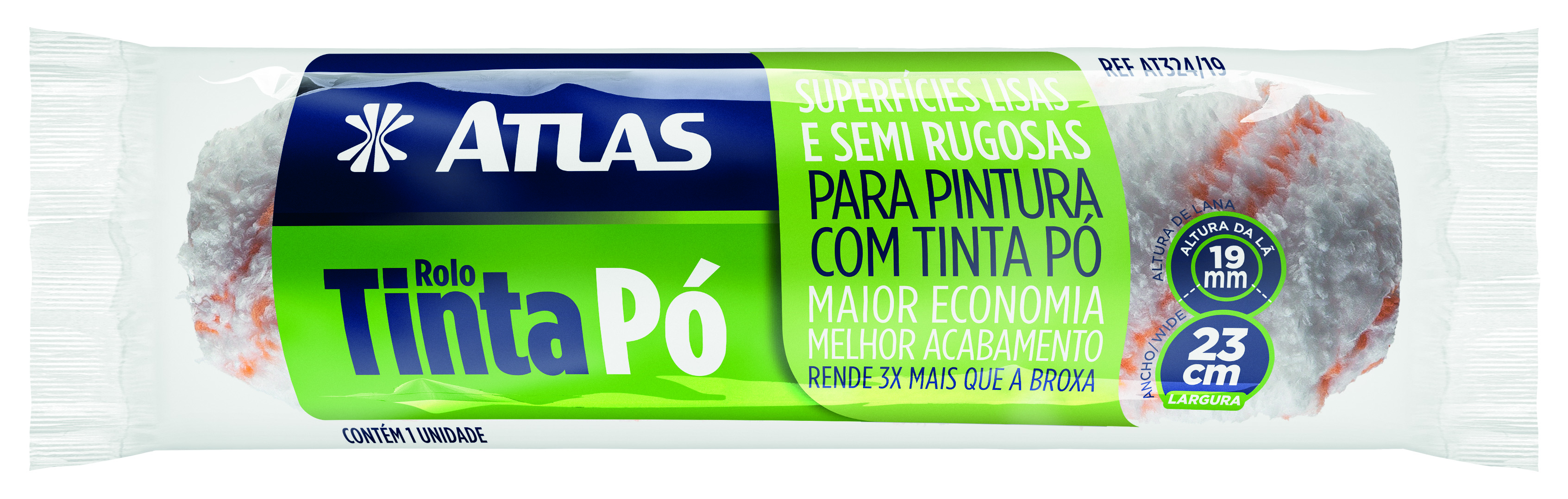 Rolo de 23cm de microfibra especial com manta de 19mm de altura para pintura de tintas em pó. Ideal para pintura em superfícies semi rugosas.