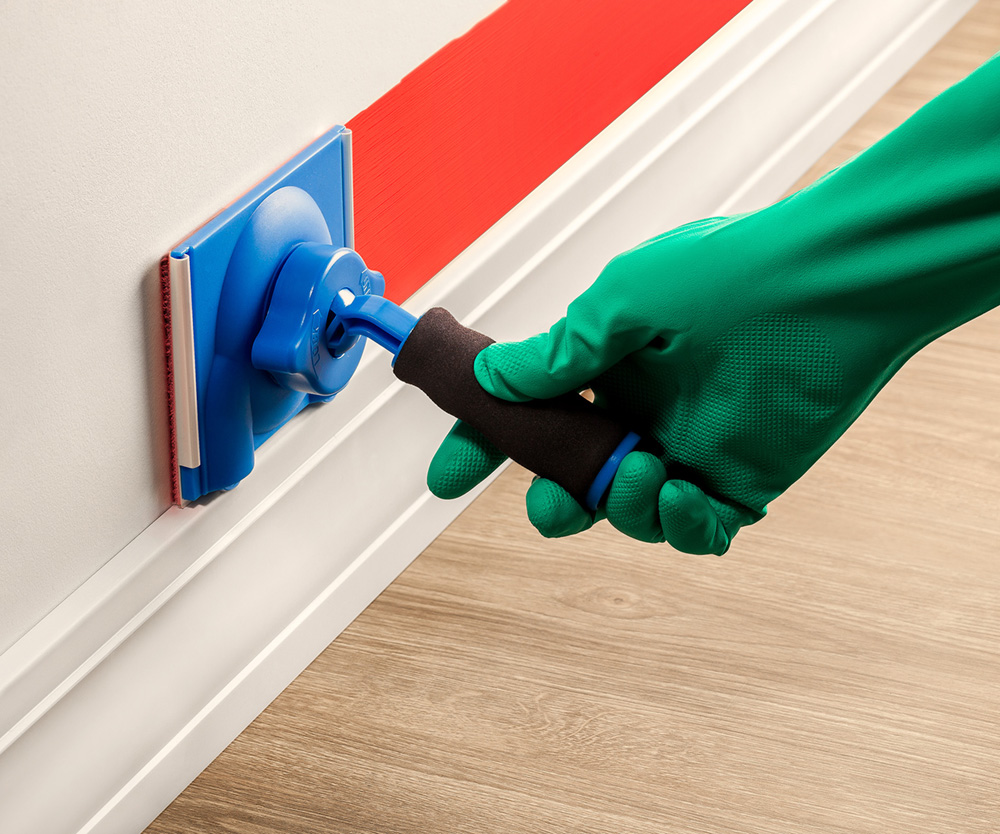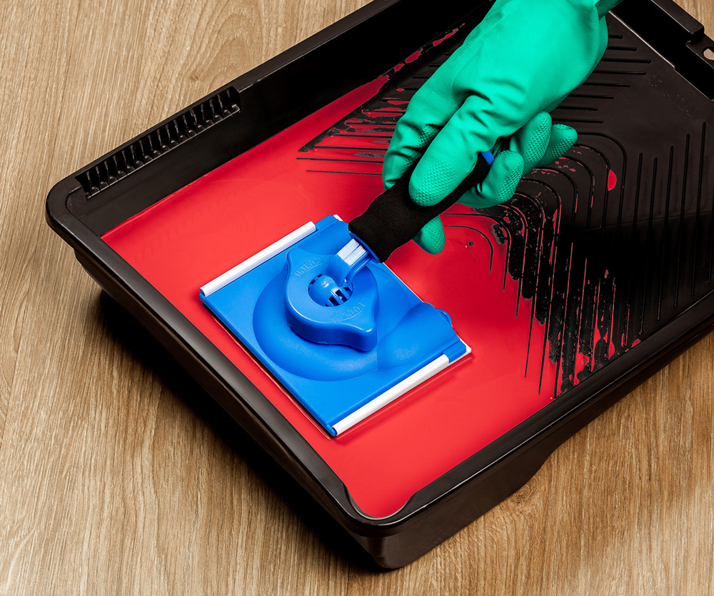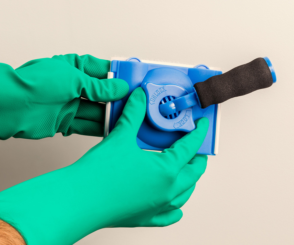 PAD flocado com cabo ajustável em 360° com rosca. Indicado para pintura de recortes e cantos de paredes e aberturas em geral. Ideal para aplicação com tinta acrílica, esmalte e pva em superfície lisa.