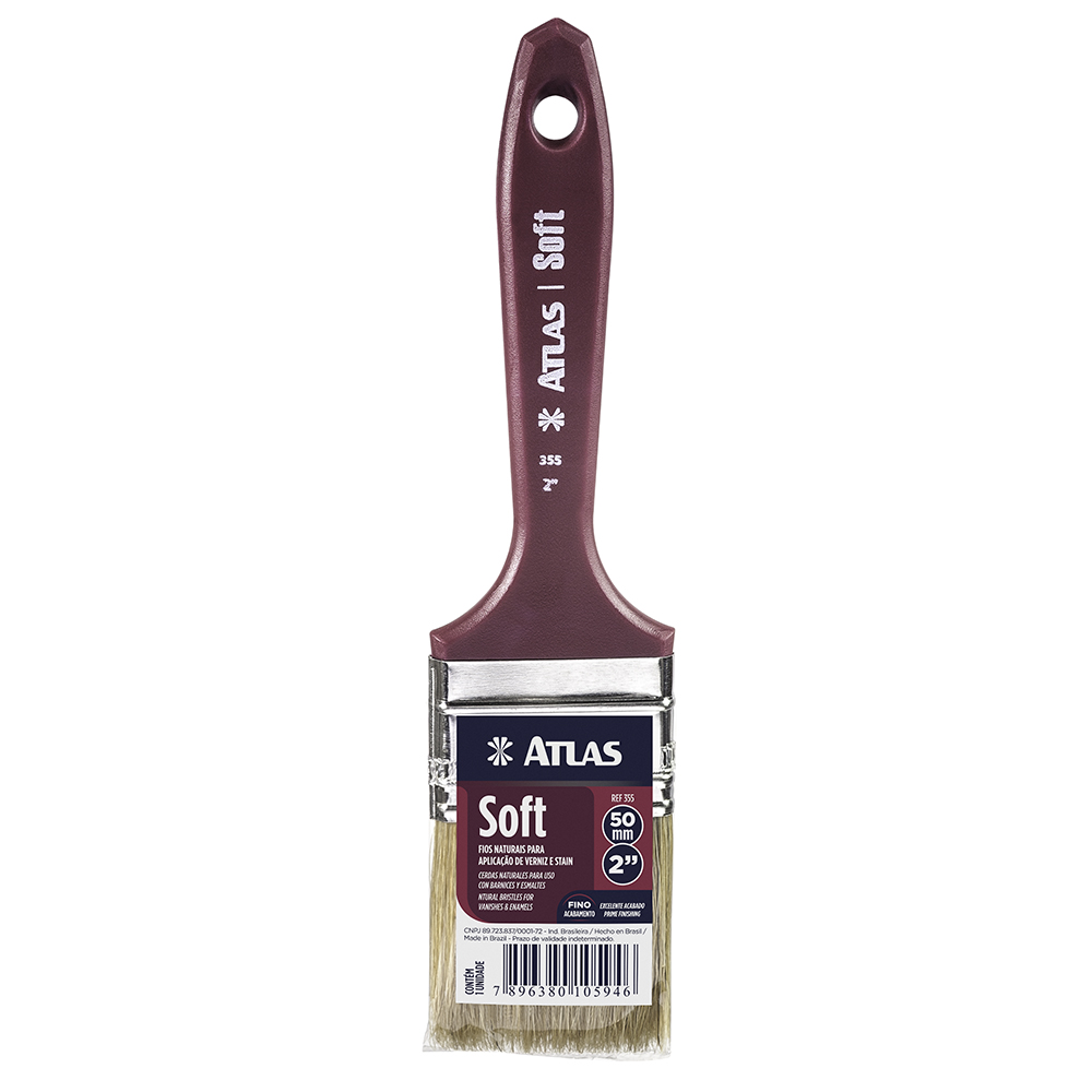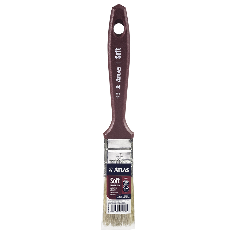 Trincha com cerdas brancas, 100% naturais, extra-macias para um ótimo acabamento. Indicada para verniz e stain.